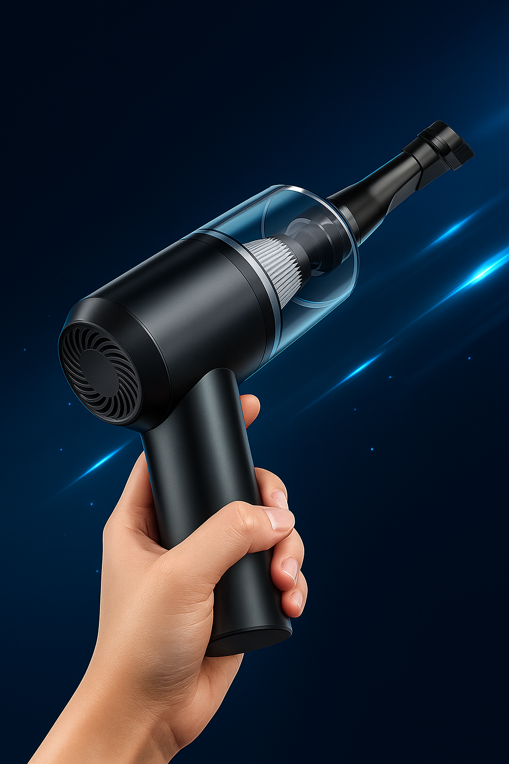 The Portable Vacuum delivers powerful suction performance in a sleek, cordless design — combining innovation, convenience, and style in one compact tool.Whether it’s dust, crumbs, or pet hair, this mini vacuum gets the job done effortlessly. Designed with advanced filtration technology, it traps even the smallest particles, keeping your surroundings spotless.Use it in your car, office, or at home — its lightweight build and ergonomic grip make cleaning fast and comfortable. The long-lasting rechargeable battery ensures you can clean anytime, anywhere without dealing with messy cords.